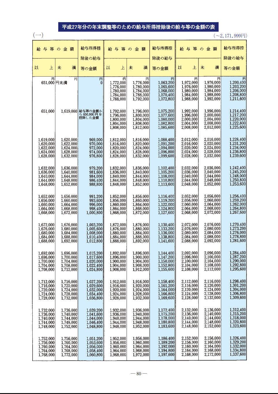 支払金額は、その時の「年末調整等のための給与所得控除額後の金額の表」に金額をあてはめて記入する金額を求めます。