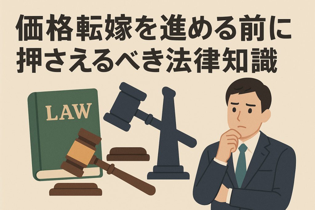 もう一つ、念頭に置いておくべき法律が「独占禁止法」です。この法律は、公正で自由な競争を促進することを目的としており、価格転嫁に関連する場面では、特に「優越的地位の濫用」や「共同の取引拒絶(カルテル)」が問題となり得ます。