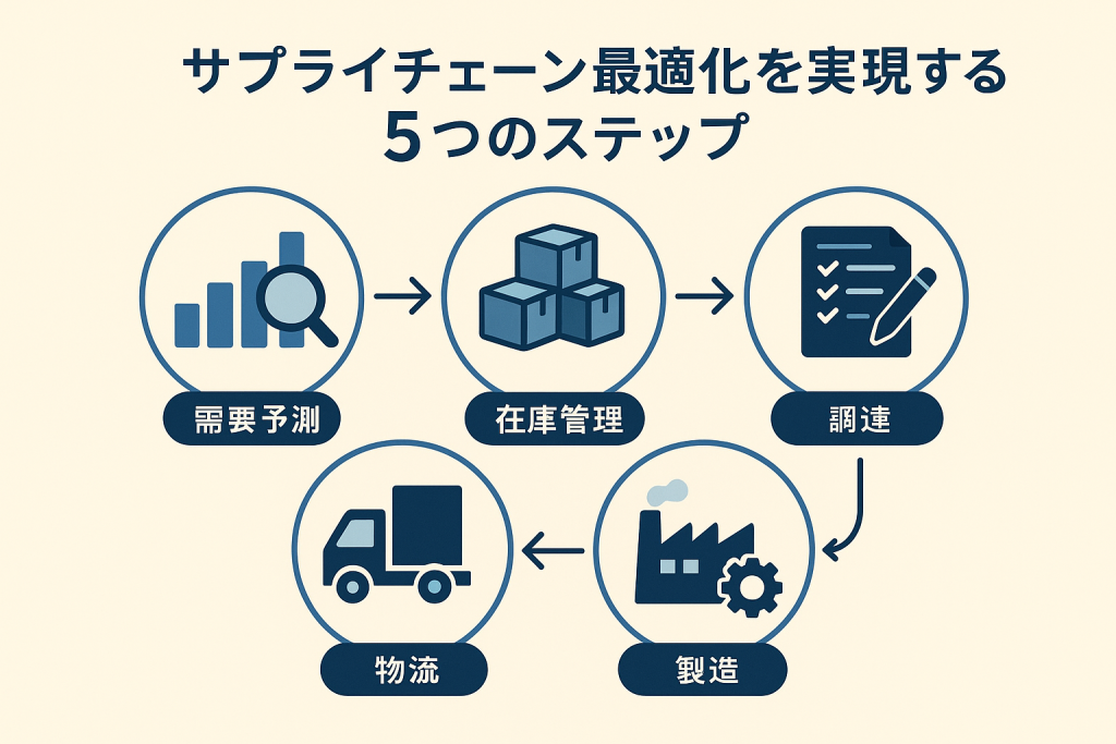 では、これらの課題を乗り越え、サプライチェーンを最適化するためには、具体的に何から始めればよいのでしょうか。ここでは、実践的な5つのステップに分けて解説します。