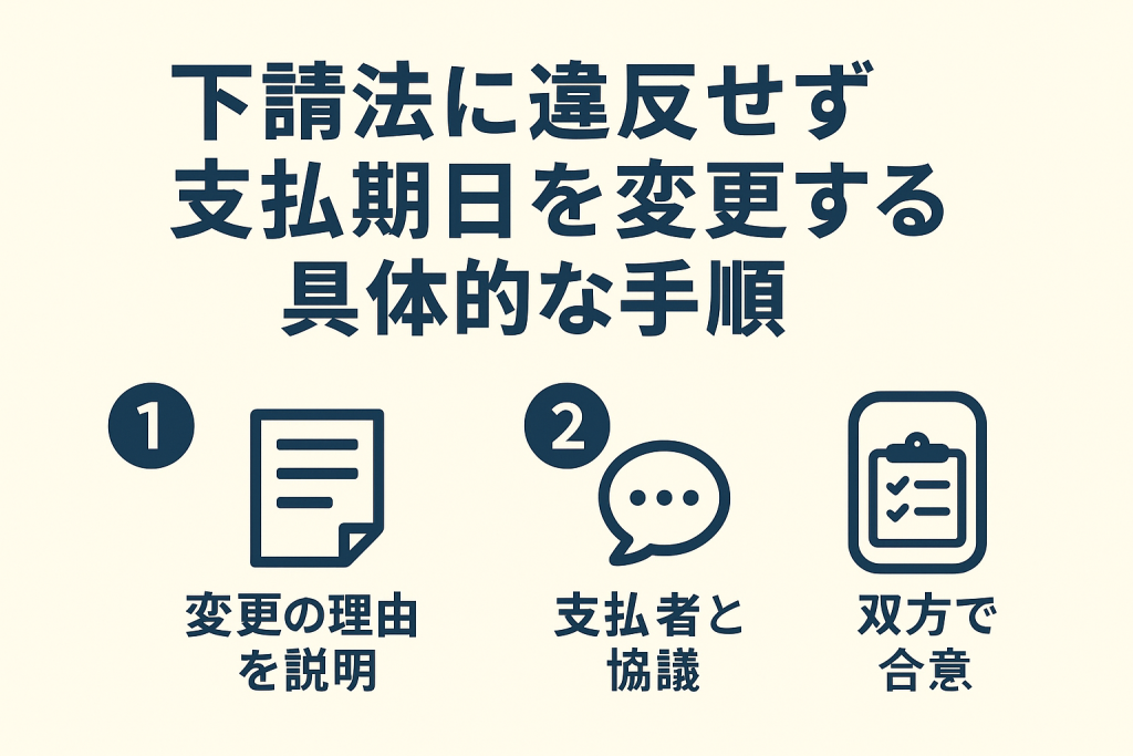 それでは、この厳格なルールの下で、どのようにすれば支払期日を合法的に変更できるのでしょうか。結論から言うと、「双方の合意」と「60日ルールの遵守」という2つの絶対条件を満たせば、変更は可能です。ここでは、その具体的な手順を解説します。