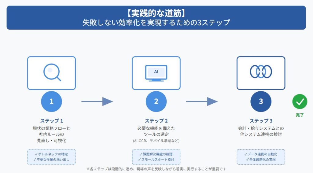 経費申請の効率化を現場に定着させるための3ステップ