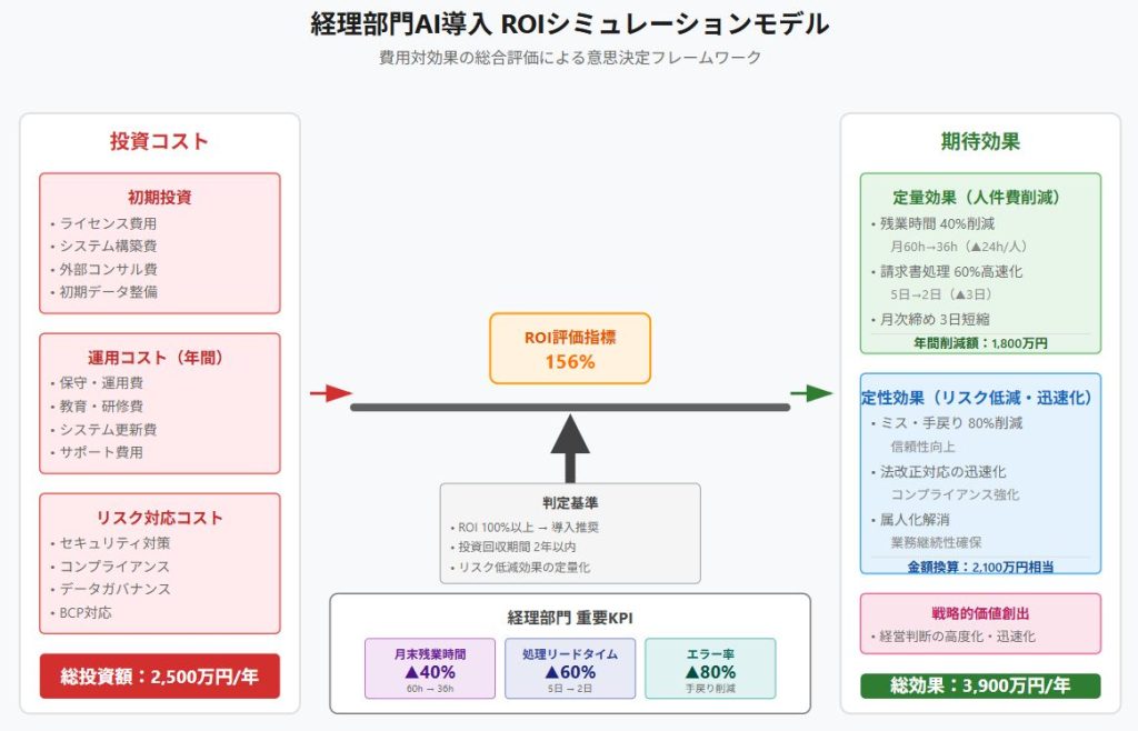 これらの評価基準を踏まえ、最適な投資と運用計画を事前に立てておくことで、導入後の費用対効果を客観的に検証しやすくなります。特に経理部門では、月末の残業時間の削減率や請求書処理のリードタイム短縮など、具体的な評価指標(KPI)を設定し、シミュレーションを行うことが成功の鍵となります。