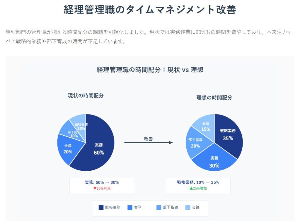 月次決算、予算管理、部下の育成、法改正への対応など、経理部門の管理職の皆様は、日々多岐にわたる業務に追われていることでしょう。「重要な戦略業務に時間を割けない」「部下への指導時間が確保できない」「残業が常態化している」といった悩みは、多くの経理管理職に共通する課題です。しかし、適切なタイムマネジメント手法を実践することで、これらの課題は確実に改善できます。