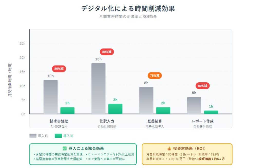 | 請求書処理 | 10時間/月 | 2時間/月 | 8時間/月 | 80% |