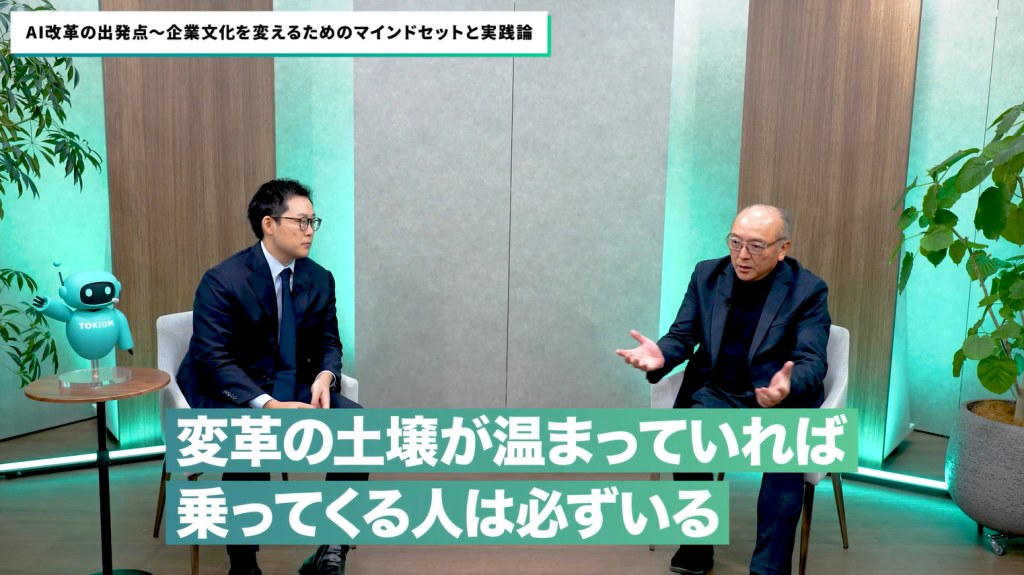 磯和氏: 明らかに今までの仕事に人が要らなくなるのが見え始めると、ものすごくケチをつけ始めます。ここは大きな壁です。この壁を超えるには、経営が「ここは全部AIに任せるけど、この人たちは別の仕事でもっと大きいことができる」という画を示さないといけません。