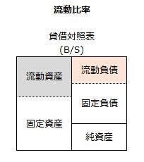 流動比率では、1年以内に入金のある資産(流動資産)が、1年以内に出金する負債(流動負債)をどの程度カバーできているかを示します。流動比率が高いほど出金よりも入金の方が多く、安全性があるということになります。