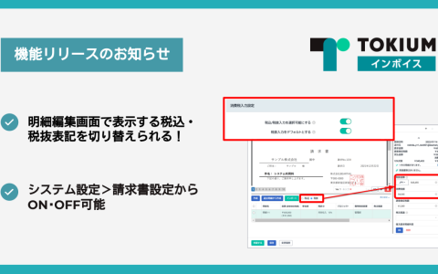 【TOKIUMインボイス 機能アップデート】明細金額の税込 / 税抜表示切り替え