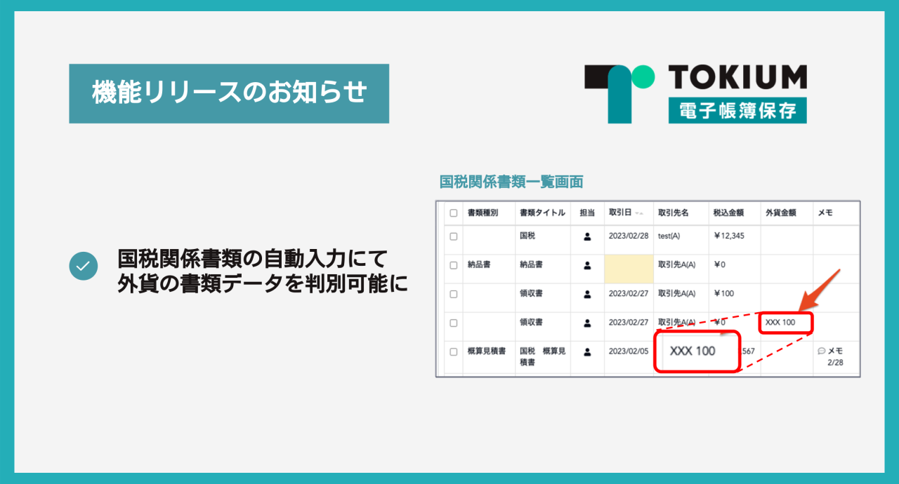 機能追加【TOKIUM電子帳簿保存 機能アップデート】国税関係書類の自動入力において外貨書類の判別が可能に