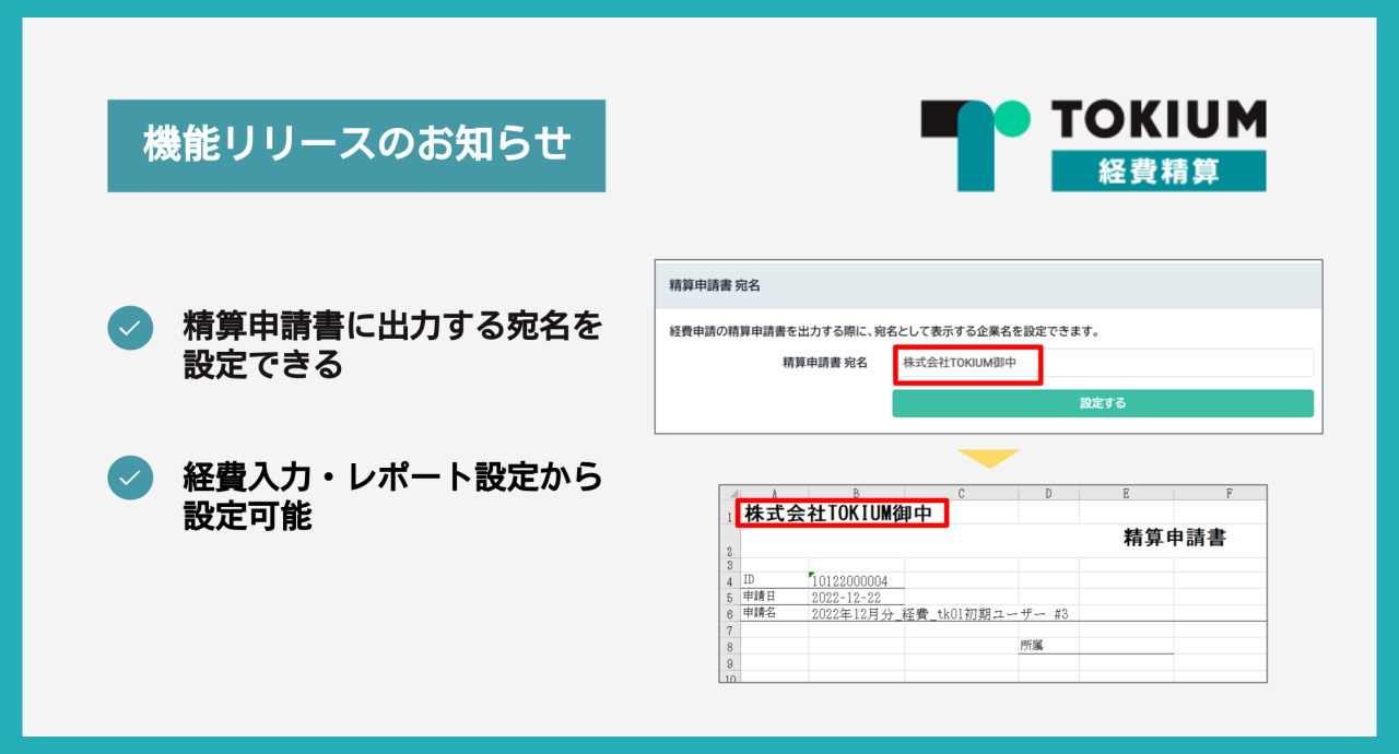 機能追加【TOKIUM経費精算 機能アップデート】精算申請書の宛名設定が可能に