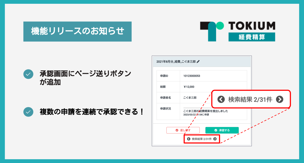 機能追加【TOKIUM経費精算 機能アップデート】承認画面のボタン表示を改善