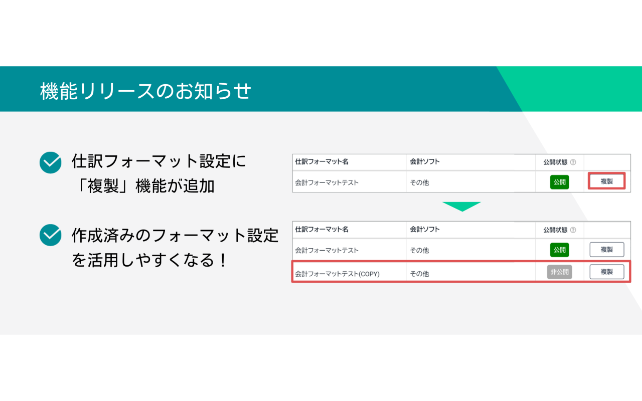 仕訳フォーマット設定に複製機能が追加されました。